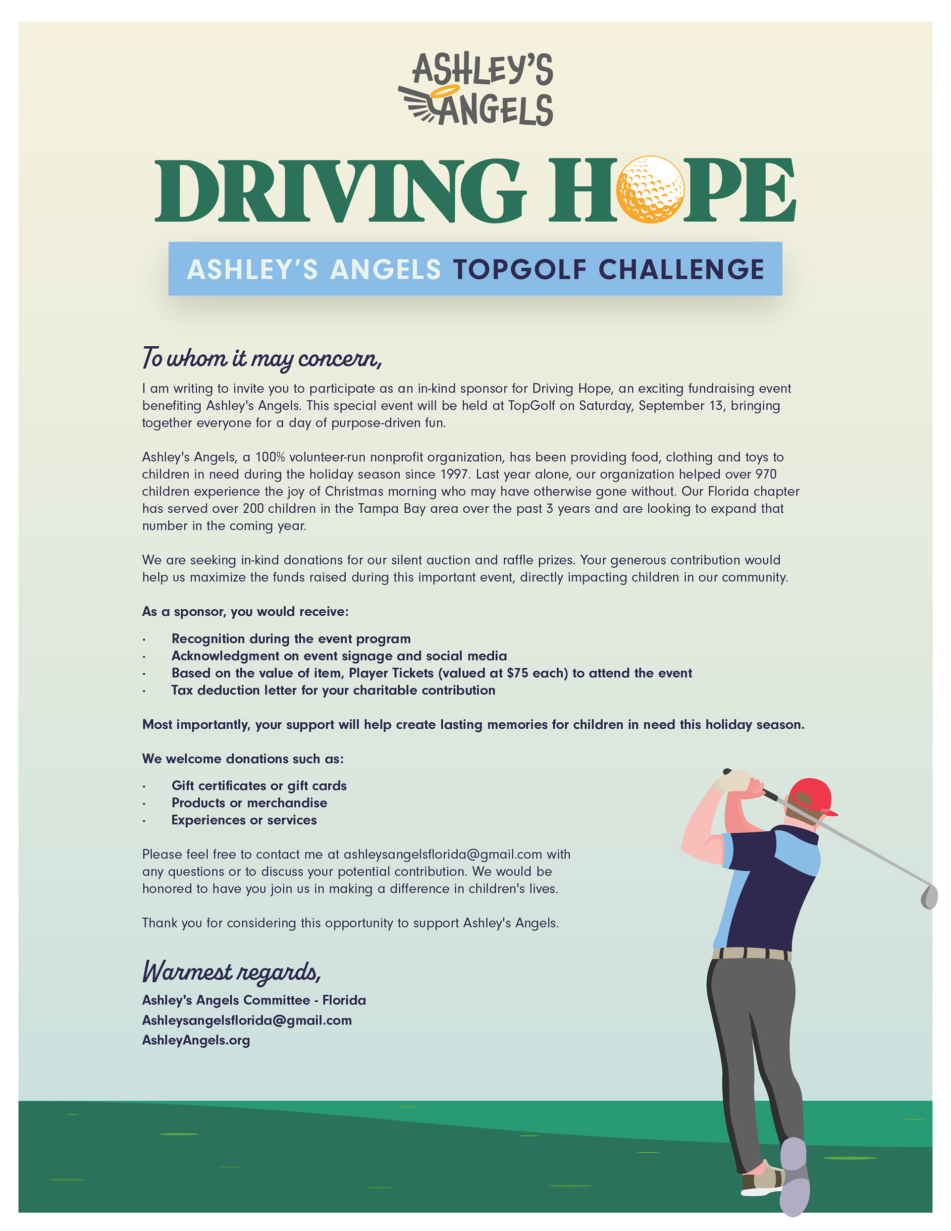 Ashley's Angels is a non-profit organization providing food, clothing, and necessities to children in need during the holiday season.